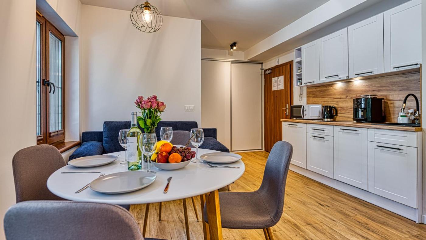 Apartament typu studio. The apartment features a washing machine, a private entrance, as well as a private bathroom boasting a shower and a hairdryer. The well-fitted kitchen has a stovetop, a refrigerator, a dishwasher and kitchenware. The apartment provides a tea and coffee maker, a dining area, a wardrobe, a sofa, as well as a flat-screen TV. The unit has 1 bed. Apartament - 4 osobowy. Powierzchnia pokoju ok.: 29 mkw.