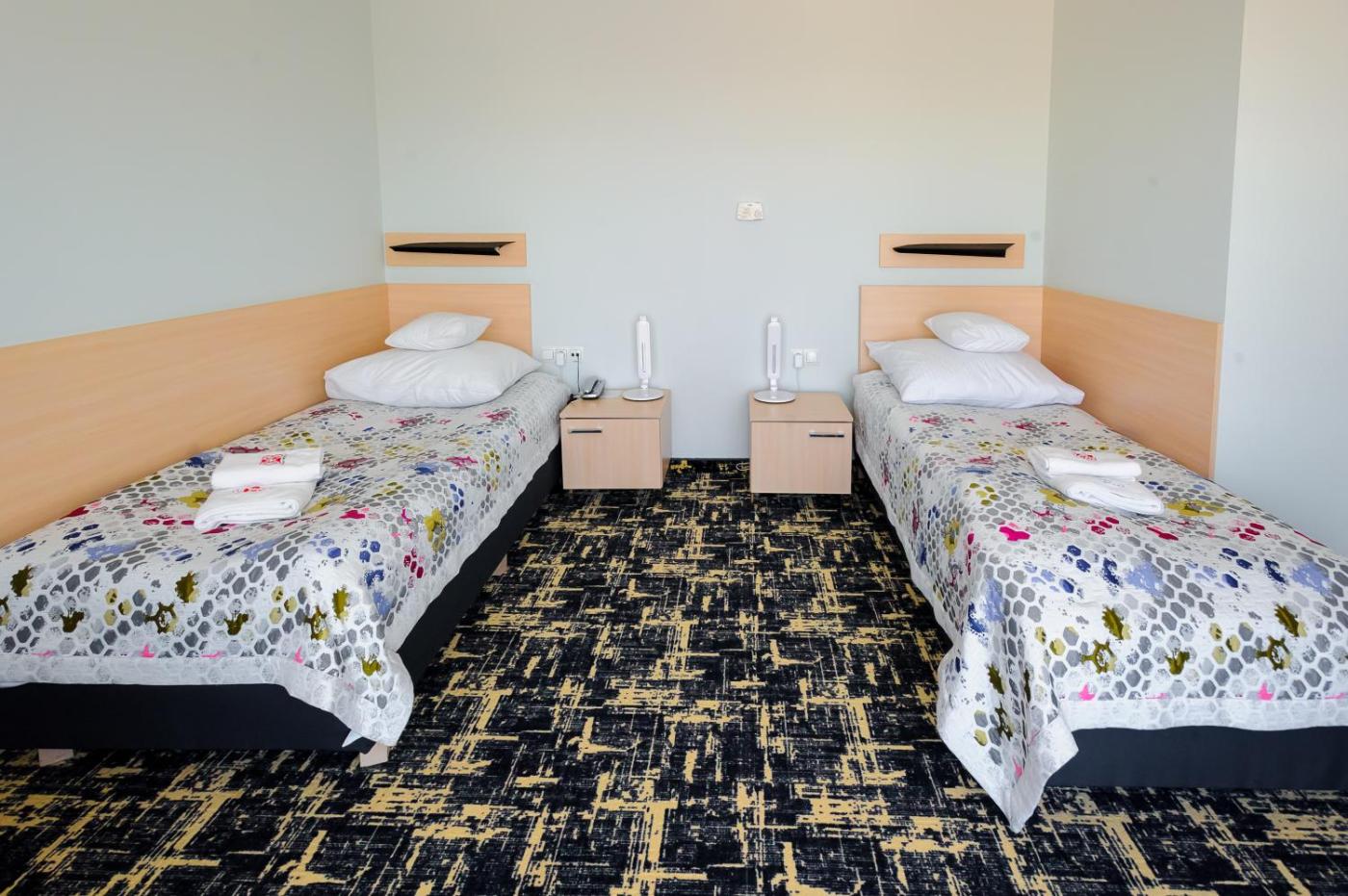 Pokój dwuosobowy typu Standard. Ten pokój dwuosobowy oferuje szafę, czajnik elektryczny oraz prywatną łazienkę z prysznicem i suszarką do włosów. Do pokoi na wyższych piętrach można się dostać windą. W tej opcji zakwaterowania dostępne są 2 łóżka. Pokój Dwuosobowy - 2 osobowy. Powierzchnia pokoju ok.: 20 mkw. ;