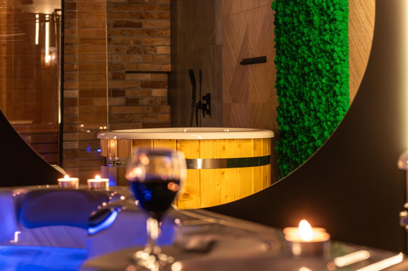 Zaplecze odnowy biologicznej obiektu Domek w Górach Blask Beskidu- Sauna, Jacuzzi, Balia w Cenie obejmuje saunę i wannę z hydromasażem.